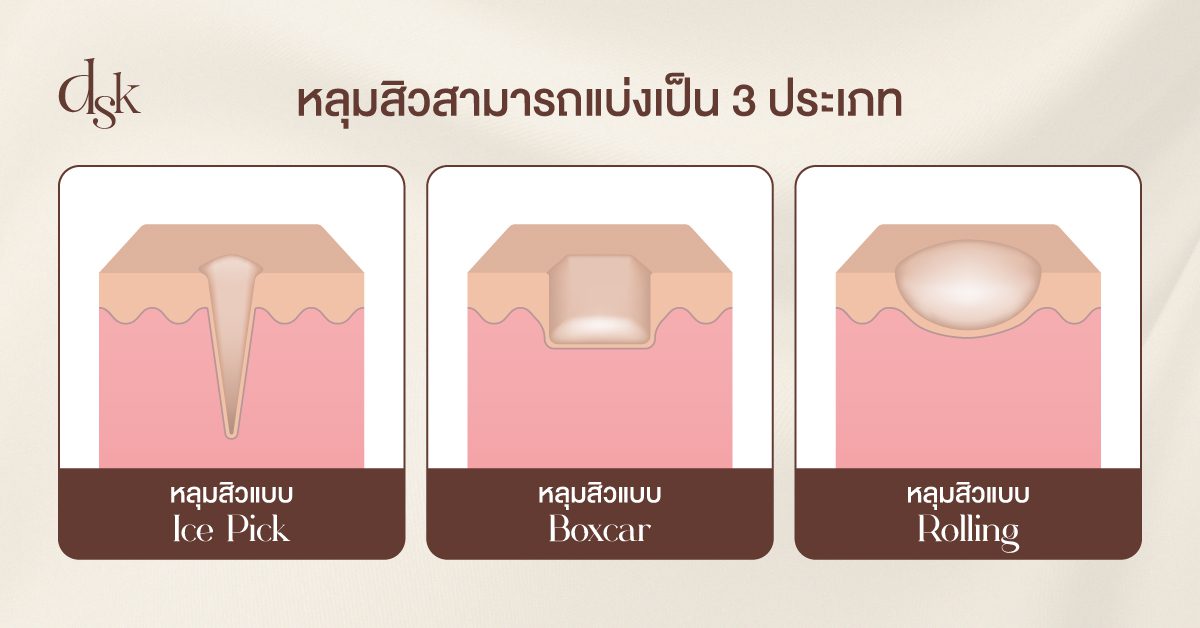 หลุมสิวสามารถแบ่งเป็น 3 ประเภท ได้แก่